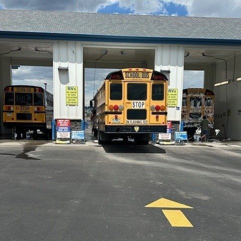 Wash includes high pressure side blasters, undercarriage wash, wheel blaster, foaming pre-soak, spot free rinse, and power dry.